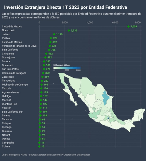 The initial quarter of 2023 saw specific states in Mexico emerge as focal points for FDI: