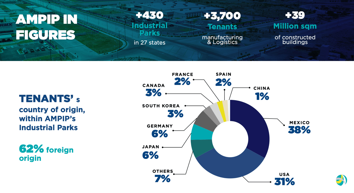 This graph shows the Tenants country of origin within AMPIP’s Industrial Parks, where the 62% are from another foreign country.